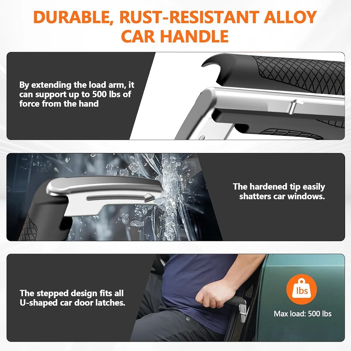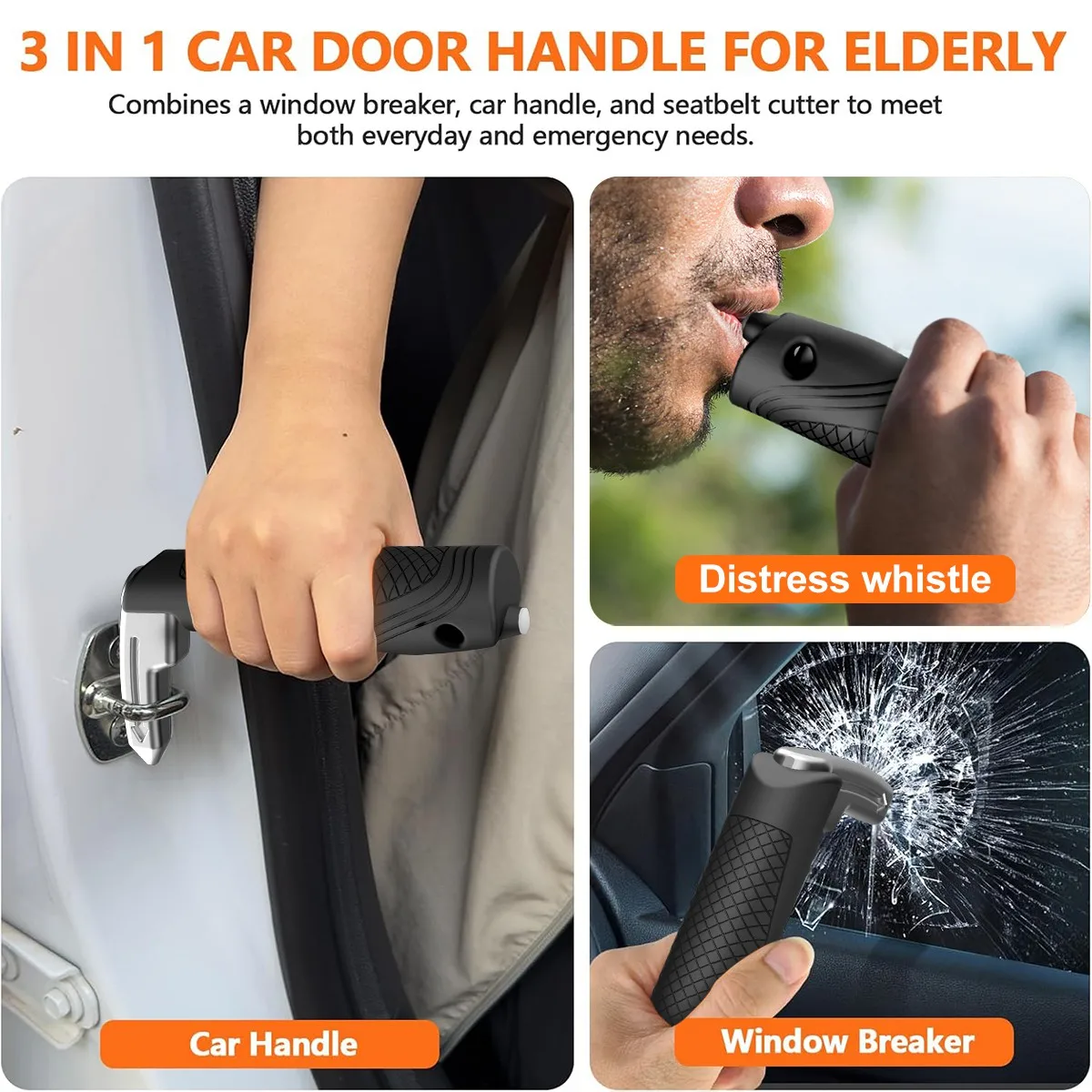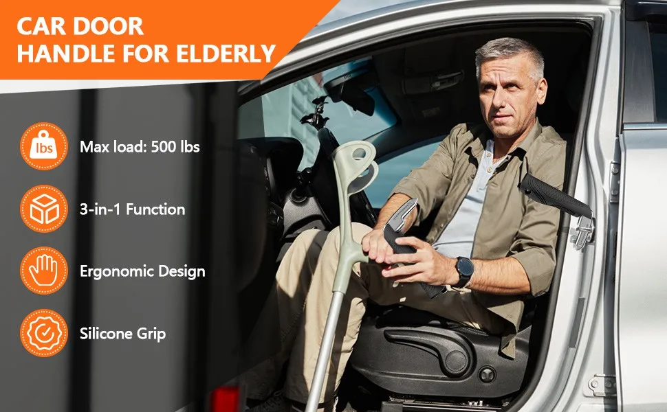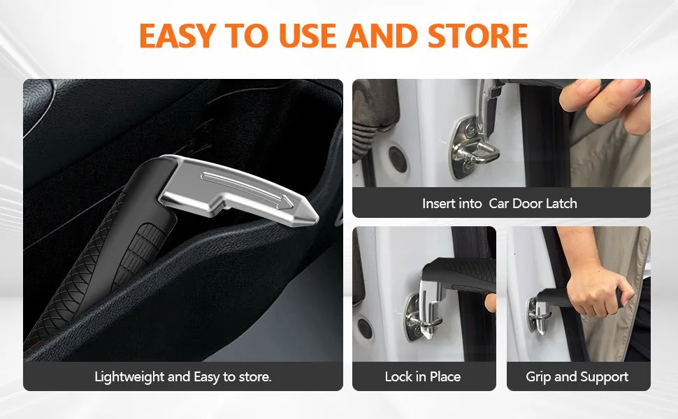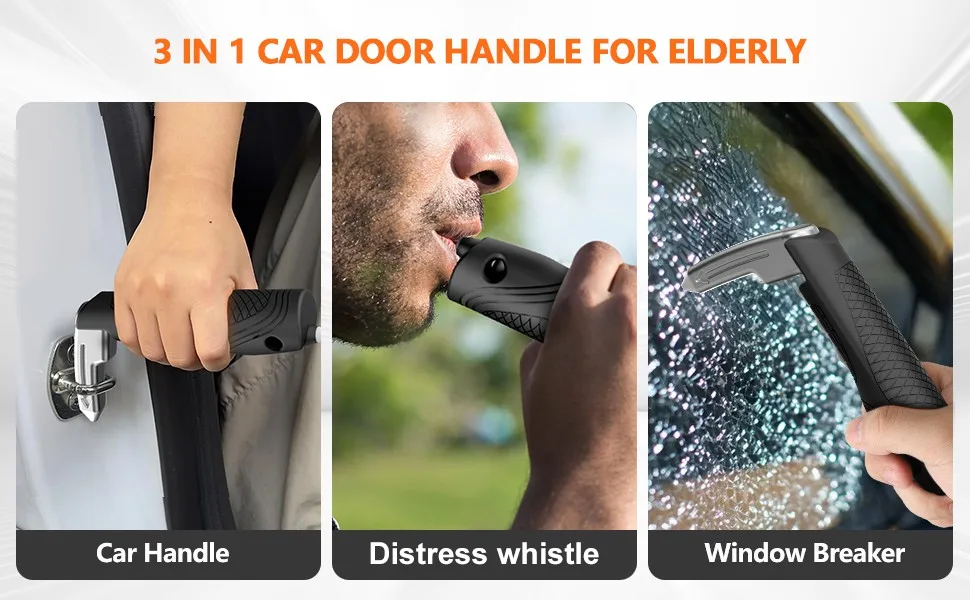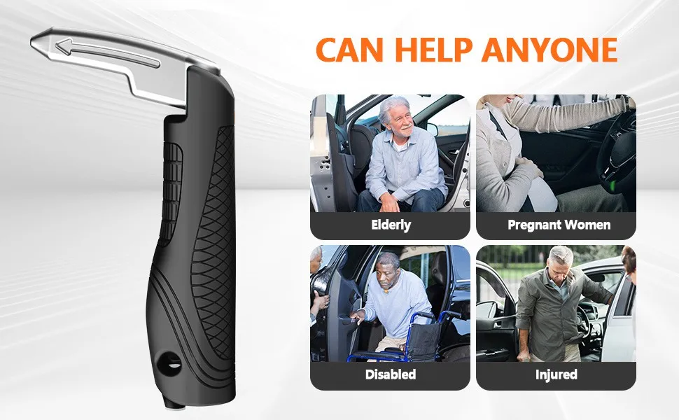 1 Portable Vehicle Support Handle, Aluminium Door Assist, Window Breaker, Polished Finish, Ideal for Elderly and Gift Giving