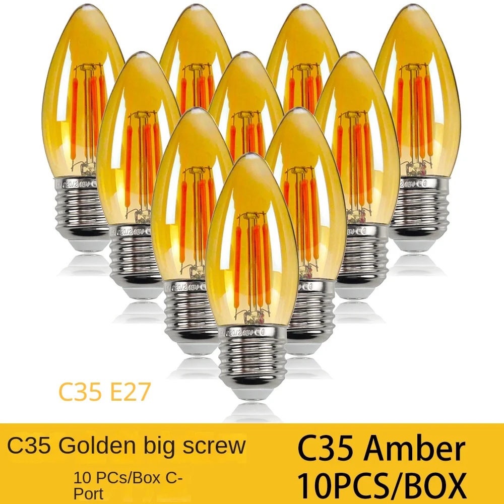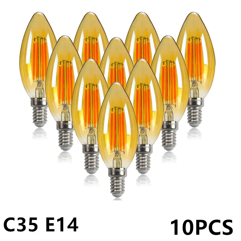 10PCS C35 Candle Bulb 4W 6W Dimmable Led Filament 220V 110V E12 E14 E27 Candelabra Base Flame Shape Lamps For Chandelier Light