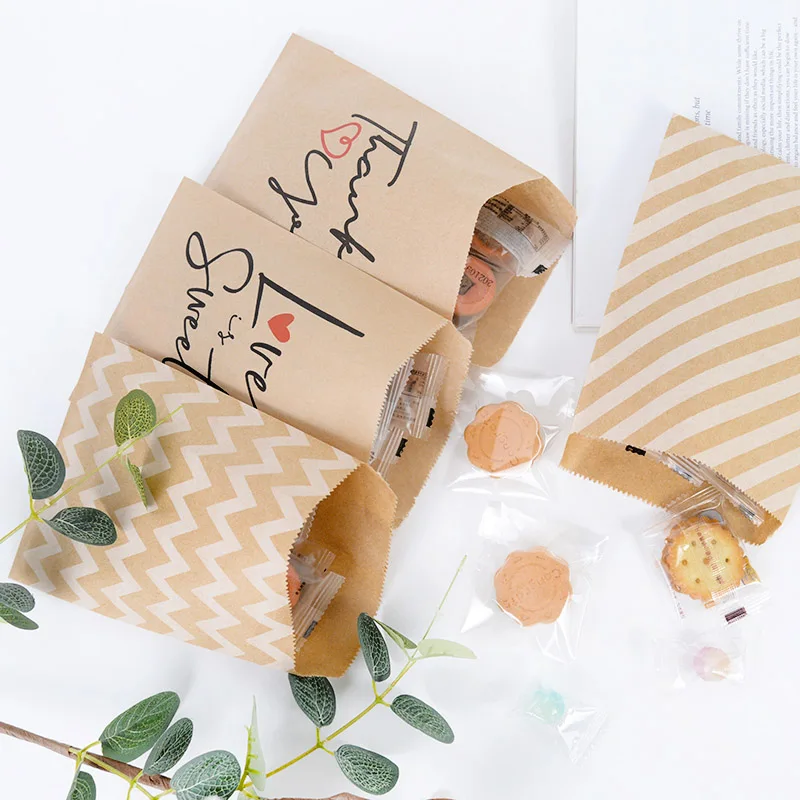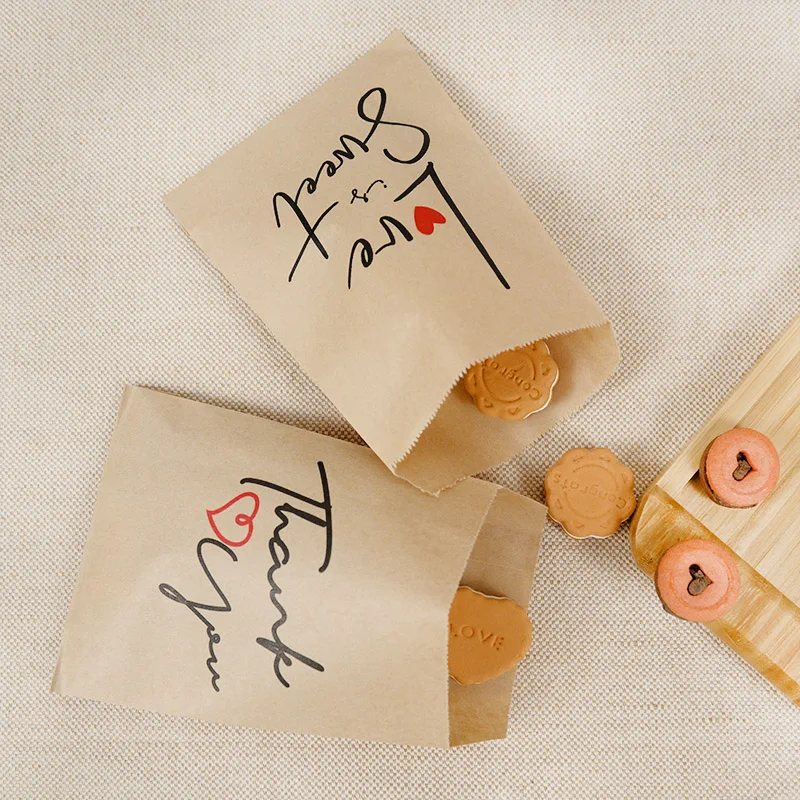 25/50pcs 13x18cm Thank You Kraft Paper Candy Bags Wedding Favors Biscuit Packaging Bag For Guest Birthday Party Decor Gift Pouch