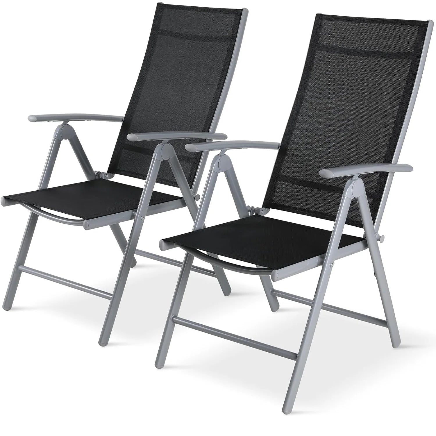 Adjustable Folding Patio High Back for Adults Lightweight Aluminum Padded Lawn Chair for Outside, Heavy Duty Supports 150kg, Black-2 Pack
