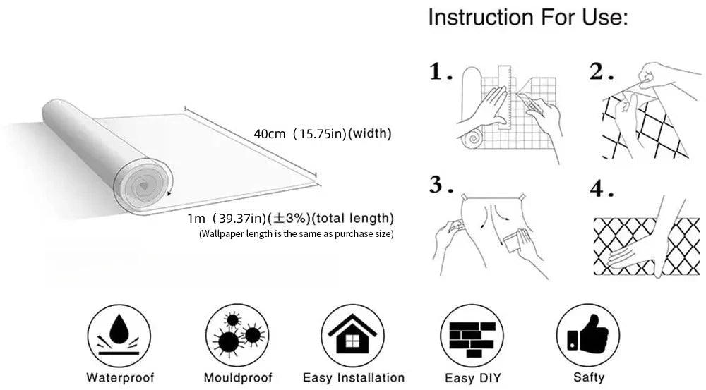 Features:self adhesive,waterproof, mildew proof, anti-fouling, high color fastness.Perfect for renters and homeowners!